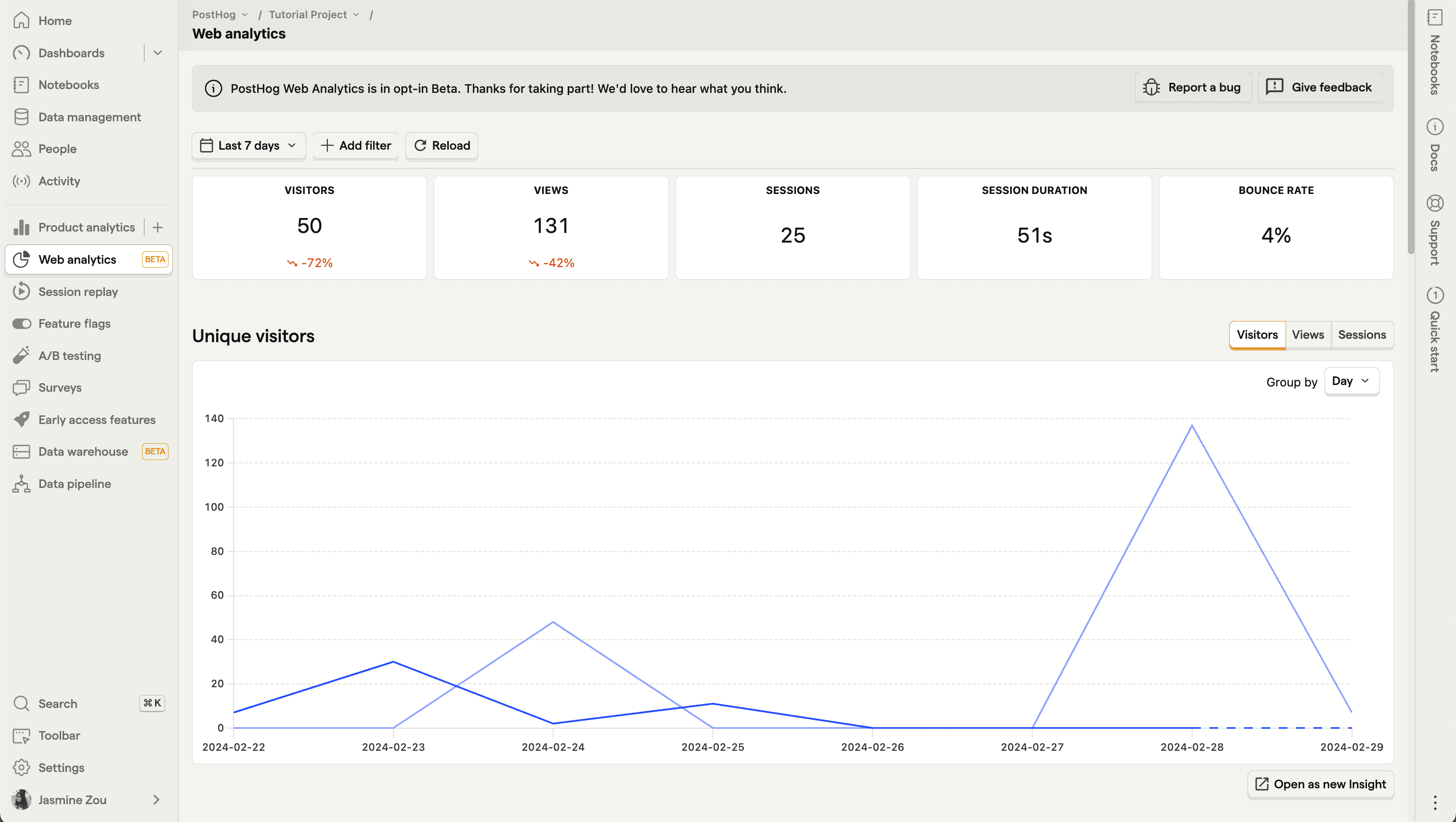 Web analytics is basically our version of Google Analytics with a few differences. Those differences include that it can be easily used alongside our other tools, and that it doesn't absolutely suck.